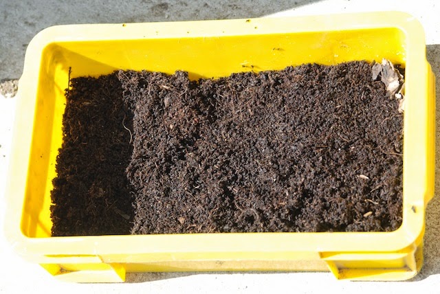 ということで芋をすっぽりとミミズ堆肥の中に置いた。