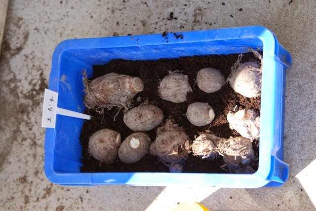 その時種芋として使う親芋は昨年末から土の中に保存している。