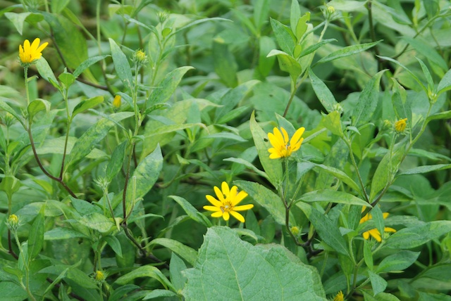 さて、先月末から、第2菜園ではキクイモの花が咲き始めた。