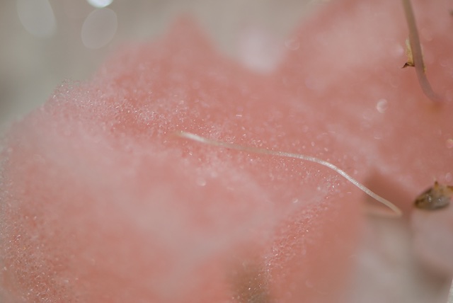 | スポンジをひっくり返して見た根の様子。 |
