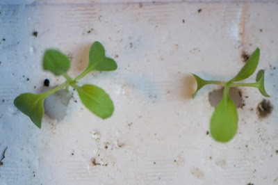 | こちらは、健康そうに見える苗だが、まだ本葉が1枚程度。 |