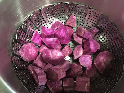 で、このまま置いていたらどんどん腐れが広がるので、腐れのひどいパープルは使えるところだけを使って、芋きんとんを作ってもらった。