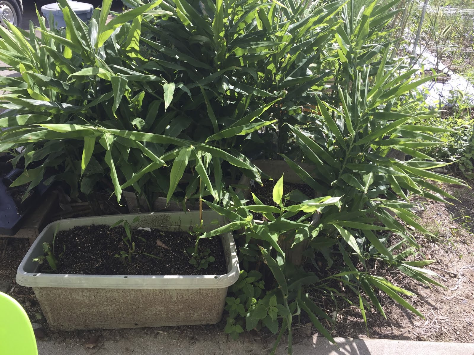 | こちらは昨年7月、とても大きく茂っていたミョウガの苗。 この時期は花ミョウガの収穫も多かった。 |