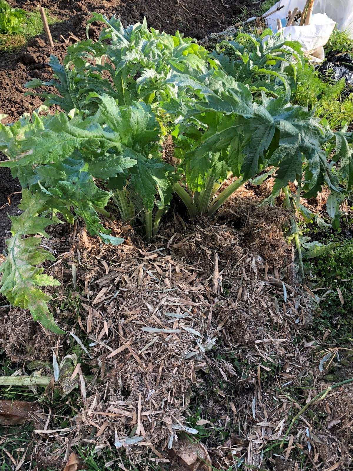 そして、このアーティチョークの根元にもたくさんの竹クズを施しておいた。