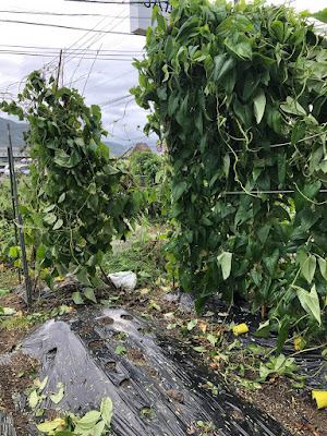 | 嬉しいことに、予防処置を施しておいたツクネ芋や宇宙芋の畝は持ちこたえた。 今度の10号に耐えれるかどうかは分からない。 |