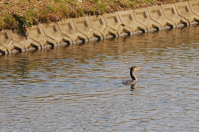 それにしてもこのカワウ、浮かんでいる姿がちょっと変だ。