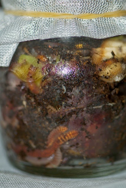 | この狭い空間、しかも液肥を流す穴も空いていない環境。 でも外から覗いてみるとミミズ君は元気そうだ。 |