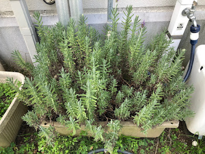 | ラベンダーは花や若い芽をハーブティーとして使っている。 今年は水不足で枯れることもなく順調だった。 ラベンダーも昨年はこの時期から防寒のため不織布をかけていた。 |