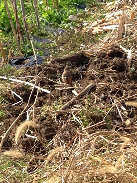 | 奥の方に見えるのはウコンが植えっぱなしの状態の畝。 第1菜園の植えっぱなしのウコンが大丈夫だったのでここも大丈夫だろう。 この手前に新しくウコンの畝を作ることにした。 |