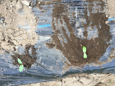 そこで、間引きしたツルムラサキをそのまま蔓野菜の畝に、4本ほど移植しておいた。