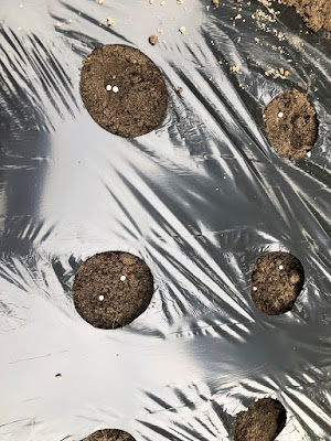 一つの植え穴に2〜3粒の種(コーティング種)を蒔いておいた。