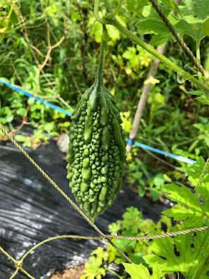 | ここまでやや低温だったためかゴーヤの育ちは今一つ。 |