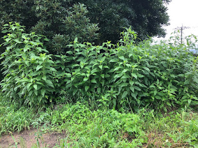 菜園の端の方に自生しているキクイモも、今は塊として壁状態になってきている。