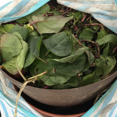 撤去しているツルムラサキも大量に出るし、里芋を収穫した時に出る茎葉もとてもよい餌だ。