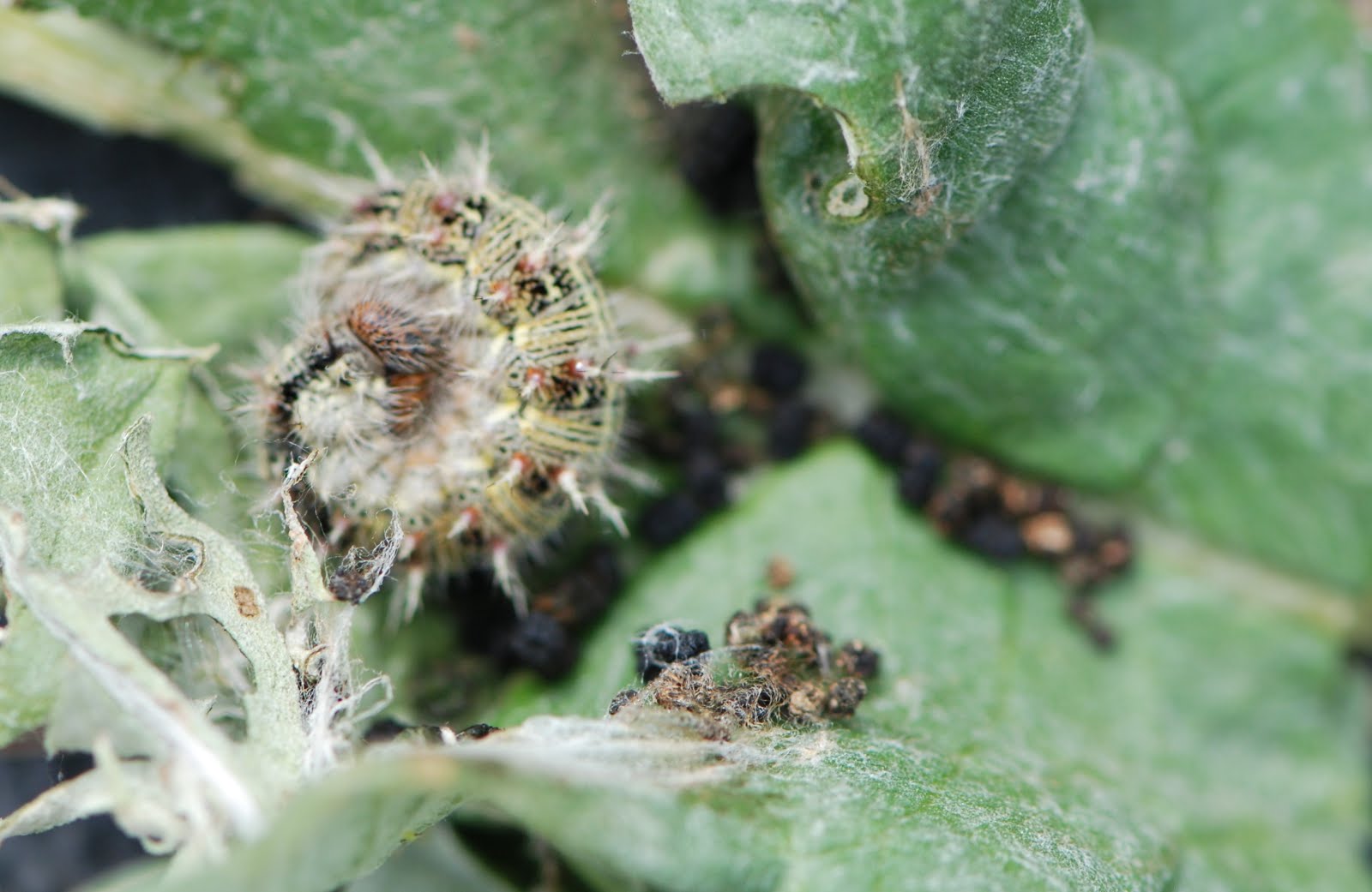 これは、この時期のアーティチョークによく見るワタノメイガの幼虫だ。 |