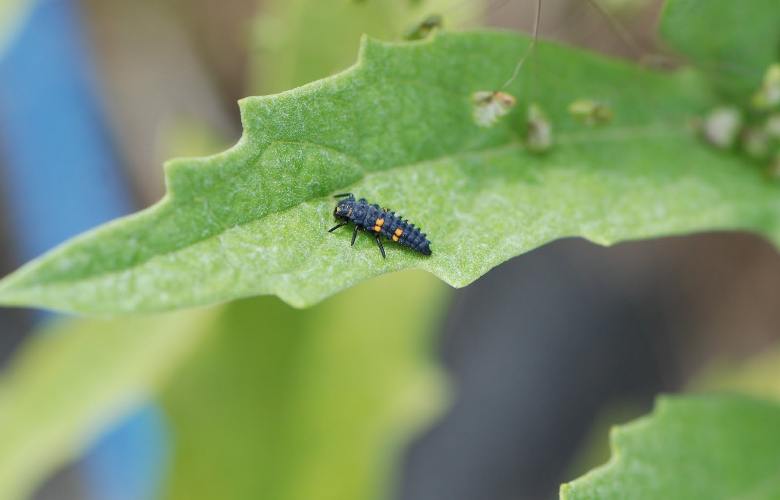 ただ、この時期はテントウムシの幼虫も現れてアブラムシ退治に精を出してくれている。