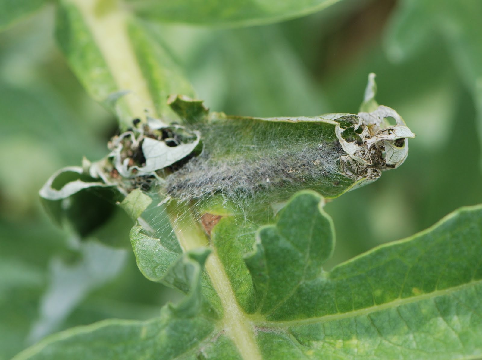 放っておくと、葉を一部食べられるだけでなく葉全体が茶色く枯れ、苗が弱ってしまう。