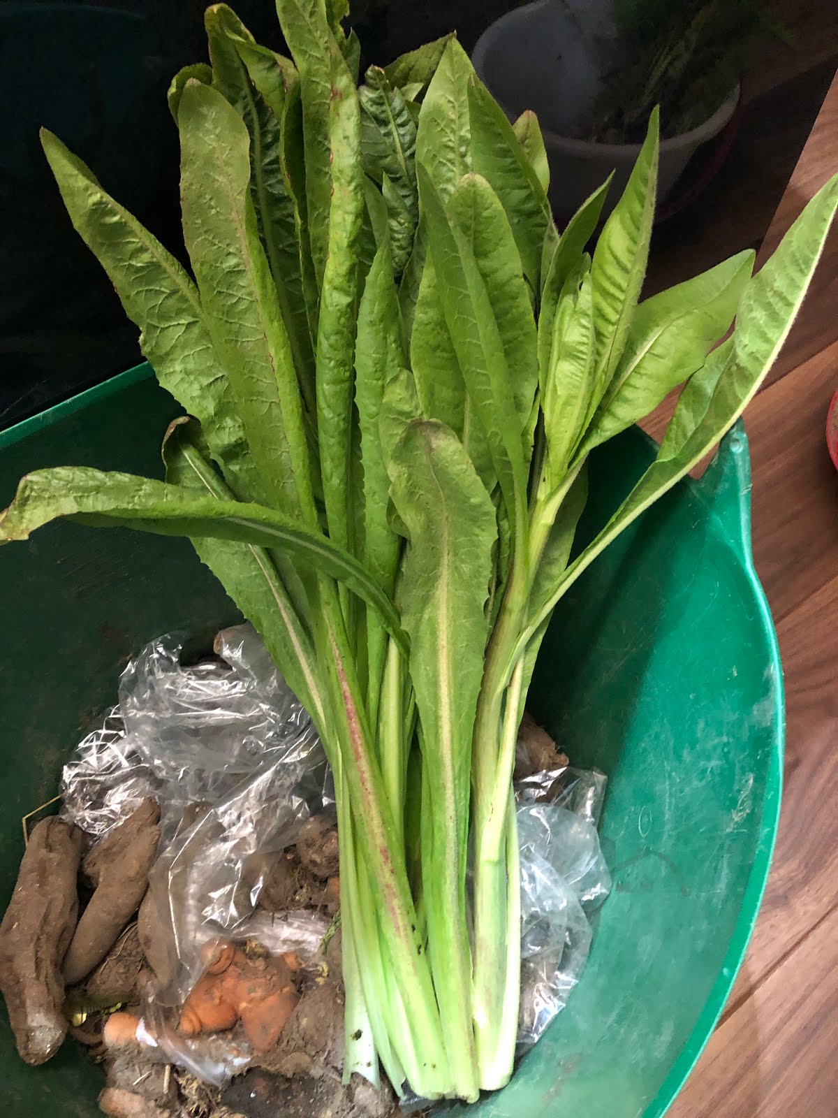 さて、チコリー類は秋種まきが主流で、今日は第1菜園にある秋蒔きのチコリーの畝を最後の収穫をして片付けた。