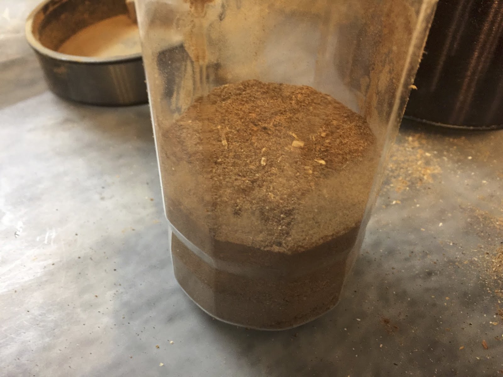 | こちらは2年前、5~6本のチコリーの根から焙煎して作った粉。 二人分のコーヒーしかできなかった。 |