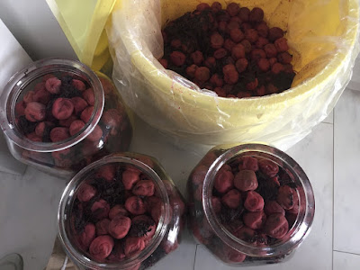 紫蘇成分が滲み出た液もかなりダークな紫だが、例年より量が多いのが少し気になった。