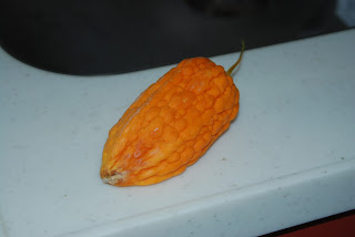 | 通常収穫するゴーヤの半分くらいの大きさなのにもう熟れてしまっている。 |