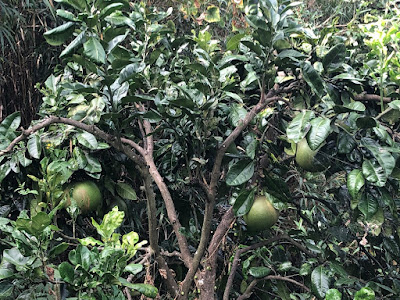 これまでメインの成り方だった晩白柚は、風通しが悪く木が弱ったためすべて実が落ちたと思っていたが、2個だけ成っていた。