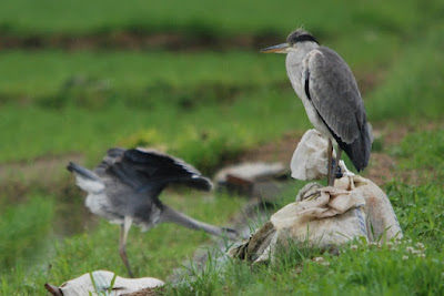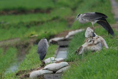 右に見えるサギのオヤジ、何やら若者に小言を並べているようだ。
