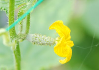 よく見ると黄色い花の付け根にはもうそれとみて分かるキュウリの姿がある。