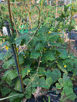 そして、これらの蔓野菜より少し成長が遅れているゴーヤ、キュウリ、四角豆、そしてツルムラサキなども少しづつ背を伸ばしているようだ。
