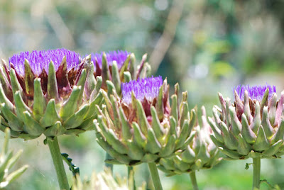 アーティチョークがついに花を見せ始めた。