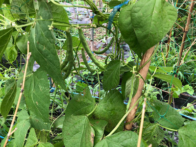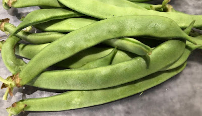 | こちらは今日収穫した蔓なしインゲン。 丸い鞘だ。 |