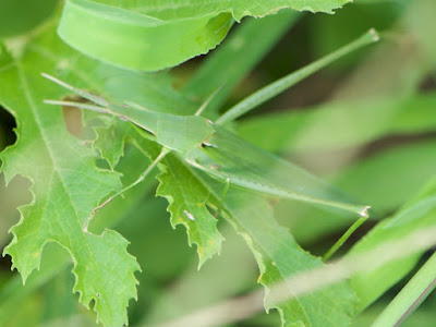 近くの雑草の中には、ショウリョウバッタ(キチキチバッタ)の姿も見える。