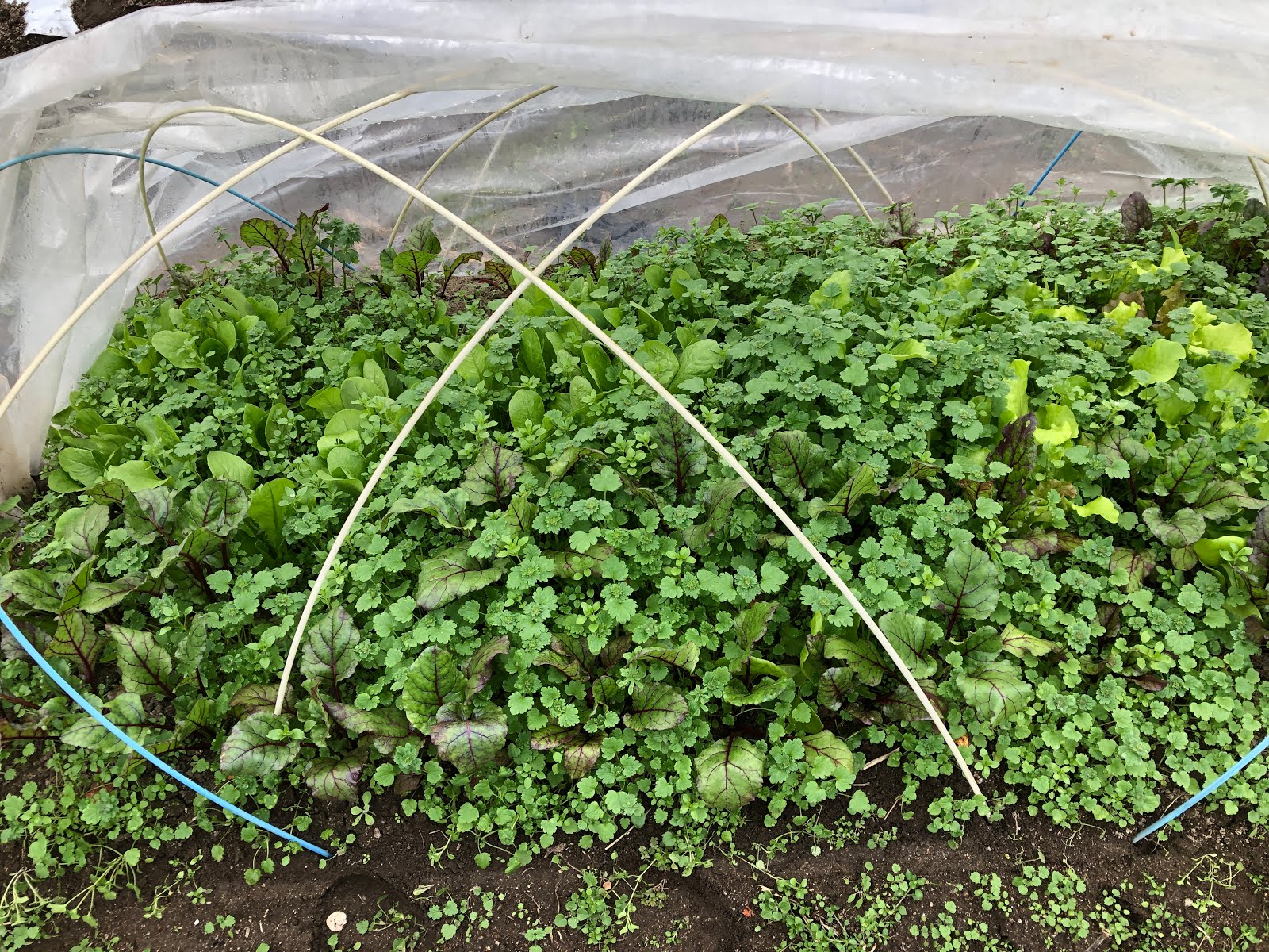 やはり、暖冬とはいえこの寒い時期、露地とトンネルの中では野菜の育ちが全く違うようだ。