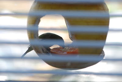 そんな弱くて心配性のメジロ君も自分の家では、一応時々周りは気にするものの落ち着いて餌を食べているのだ。