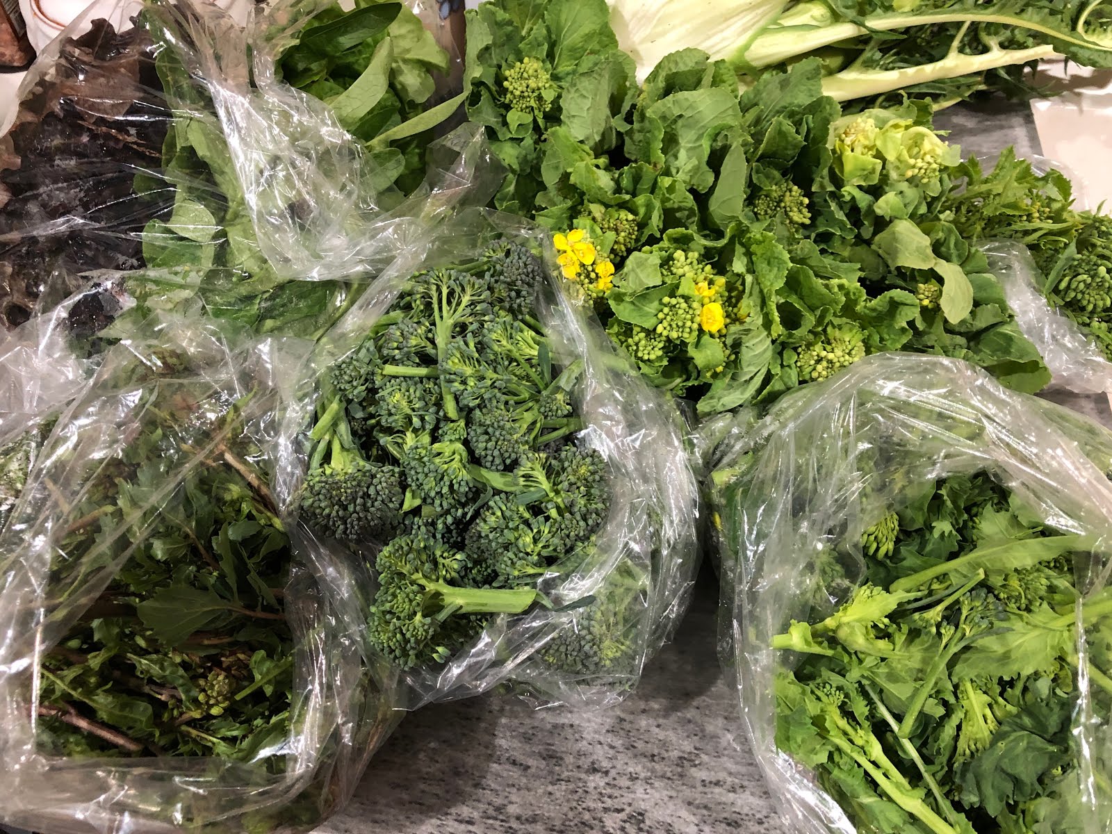 1か月ほど前からチーマディラーパやブロッコリーなどを中心に花芽収穫が増えてきたのだが、今日から大根やターツァイの花芽収穫も始まったので、今日はそんな野菜の花芽を紹介をしよう。