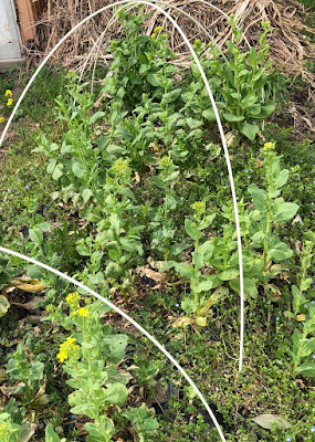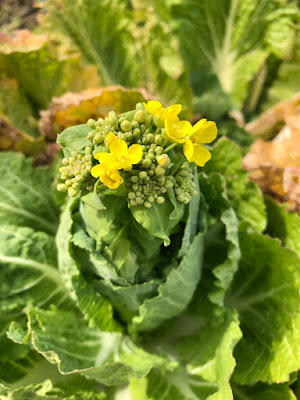 いつもならこの時期にたくさん収穫するチンゲンサイの花芽は今年は他の花芽が多すぎて収穫しないまま、しっかり花になってしまいそうだ。