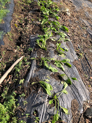ただ、以前間引き移植した畝からの収穫があと数回できそうだったので、これらの苗も2匹目のドジョウを狙って、20本ほど間引きして、それらをマルチのある畝に移植してみた。