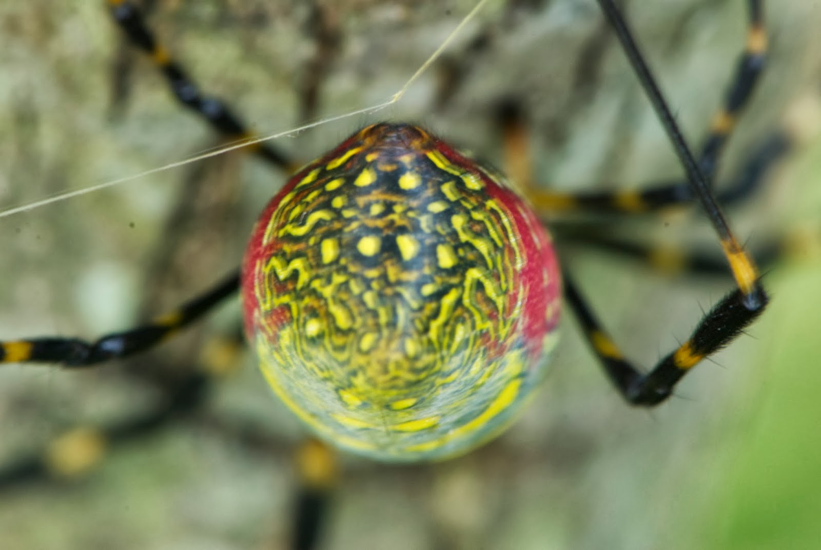 お腹がまん丸になった蜘蛛はお尻から見てもアートだ。
