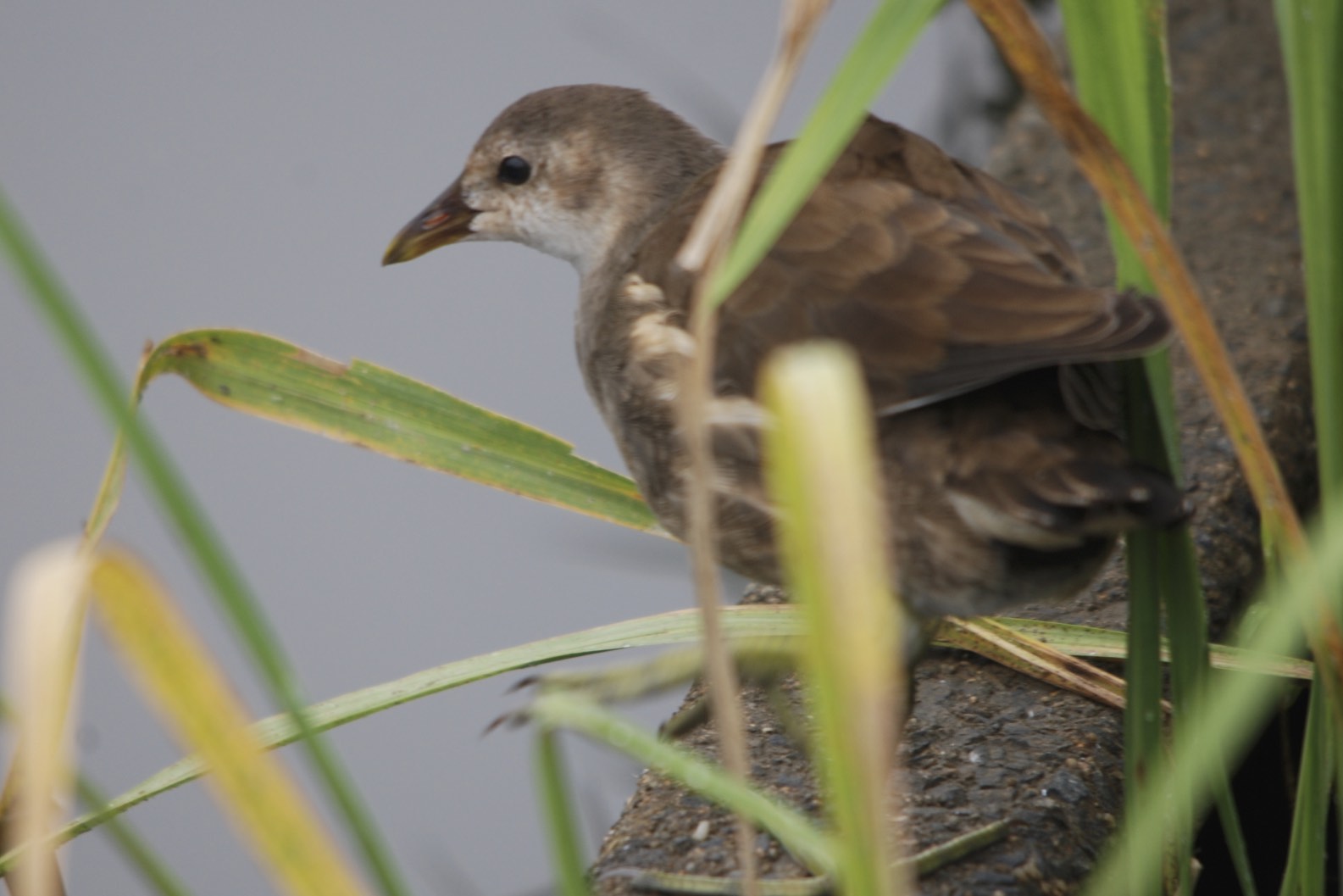 別の幼鳥は以前はコンクリートの高台から一度水に飛び込んで隣の土手に登っていたが、