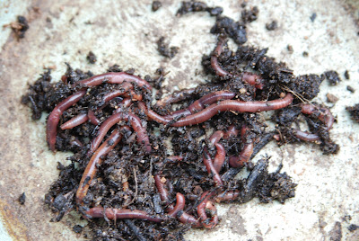土の中に赤いミミズが何匹か見えた。
