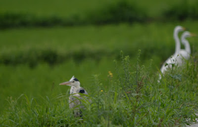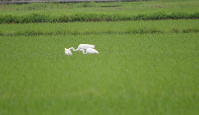 動物の方を見てみると、私を含め大多数の動物はこの雨を喜んでいないのだが、喜んでいるのが水田に集まって来る鳥たち。
