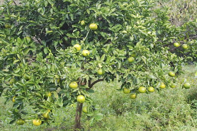 この木の奥にある八朔。こちらは去年サルの被害に遭わなかったので今年も元気だ