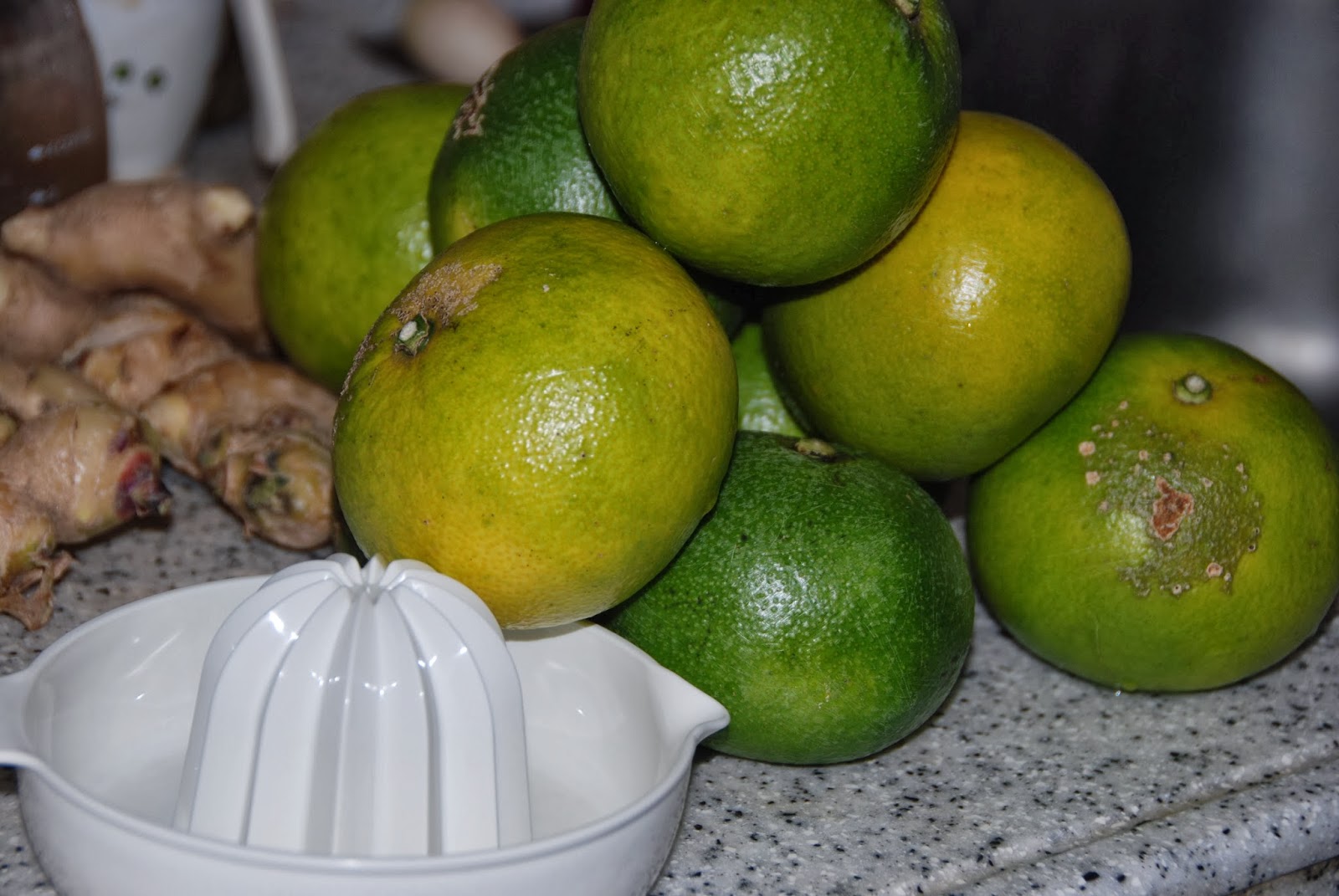 果汁を搾って焼酎に入れると、レモンとはひと味違って微妙に美味しいのだ。