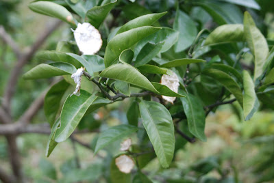| 八朔は皮が厚いから、昨年は被害を逃れたのだろうか? しかし安心していてやられたらショックも大きい。 こちらも予防のテーフを張っておこう。 |