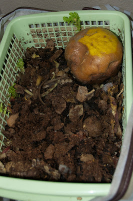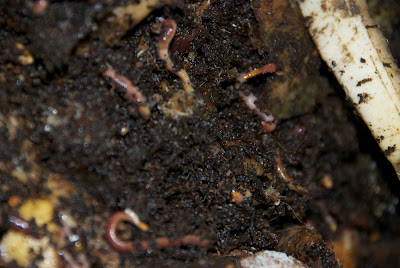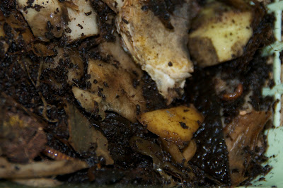 | ここはザボンをおいていた場所、数匹のミミズ君や赤ちゃんミミズの姿が見える。 |