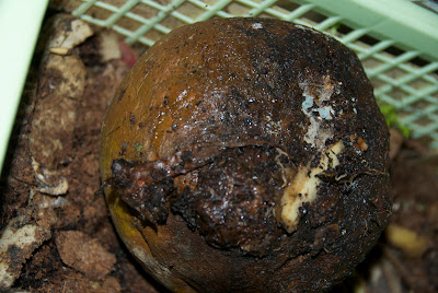 | 腐りかけのザボンは非常に見かけが悪い。こんな写真までブログに載せて申し訳ない。 ただこれも貴重な実験なのだ。 |