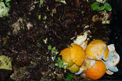新鮮でないという条件で、みみず君がミカンの皮を食べてくれることを期待している。