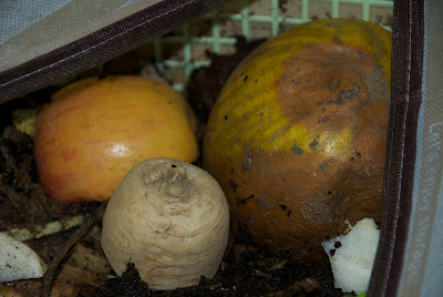 そこで、まず落ちた腐りかけのザボン。これは食べ易そうに見えたので、これを5日程前に丸ごと与えて、みみず君が食べるかどうかを見ている。