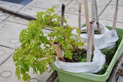 屋上土嚢袋の苗が枯れてきたアンデス赤を2本収穫した。