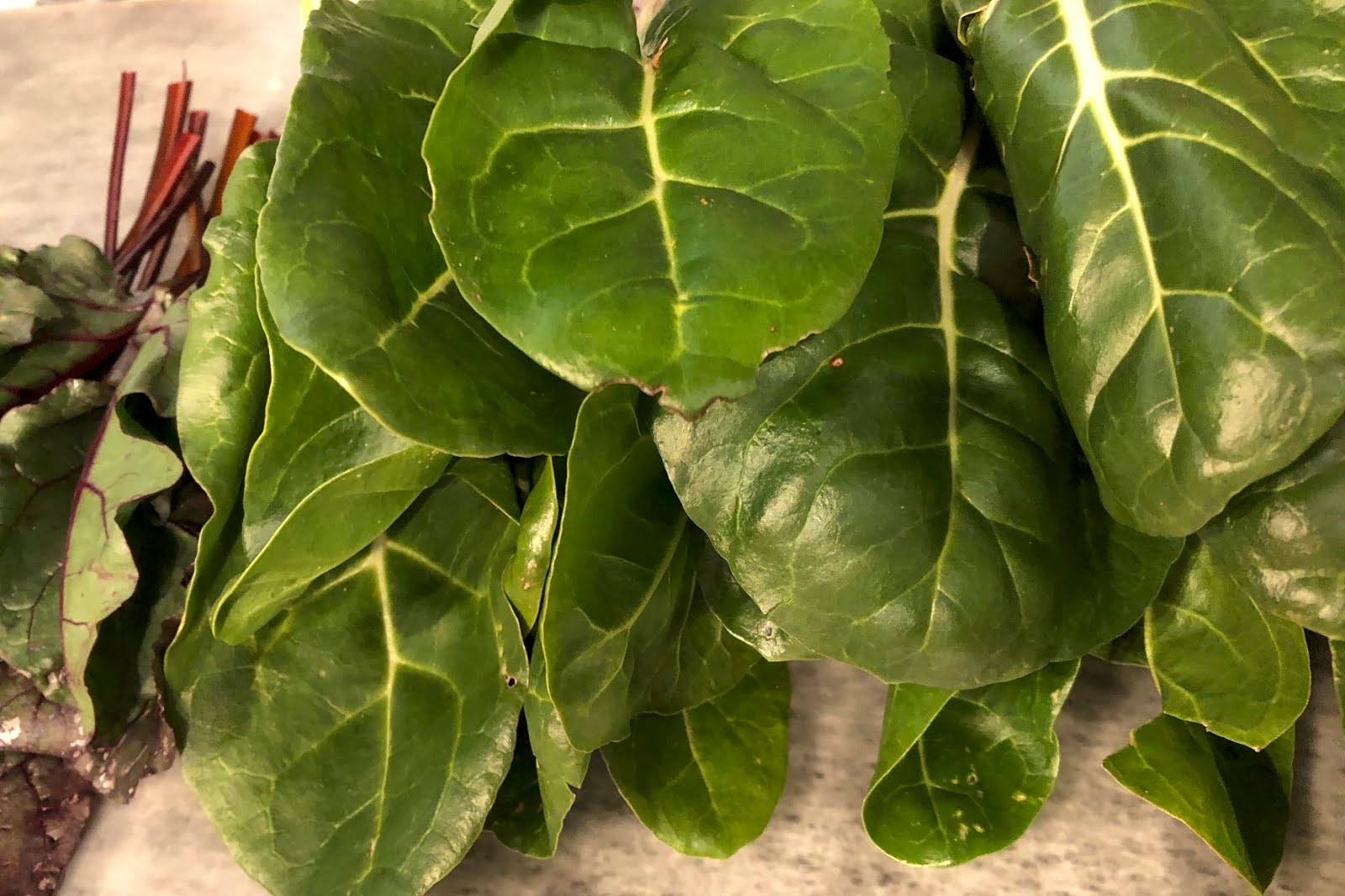 スイスチャードはほうれん草の仲間だが、葉も茎も厚くて味もしっかりしている。
